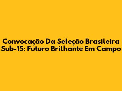 Convocação Da Seleção Brasileira Sub-15: Futuro Brilhante Em Campo
