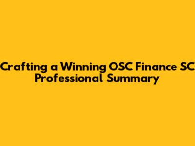 Examples of Strong Professional Summaries for OSC Finance SC