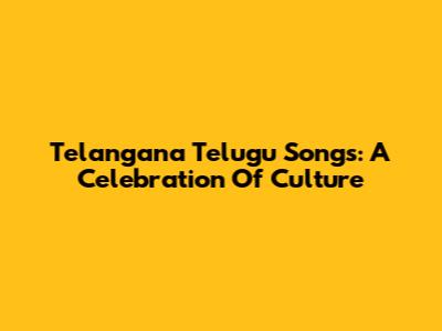 Telangana Telugu Songs: A Celebration Of Culture