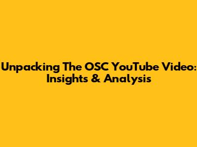 Unpacking The OSC YouTube Video: Insights & Analysis