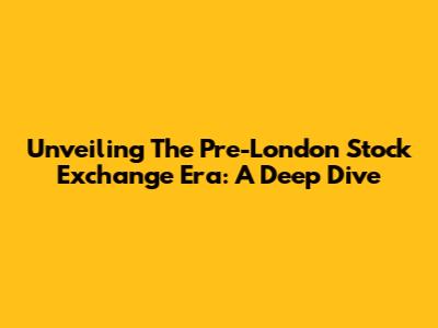 Unveiling The Pre-London Stock Exchange Era: A Deep Dive