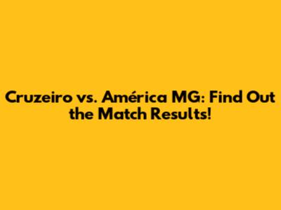 Cruzeiro Vs. América MG: Find Out The Match Results!
