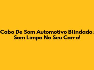 Cabo De Som Automotivo Blindado: Som Limpo No Seu Carro!