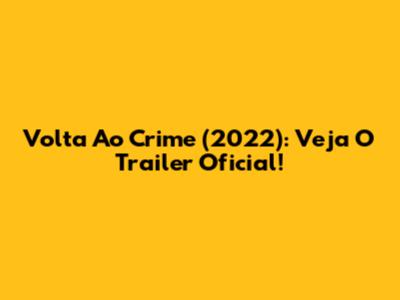 Volta Ao Crime (2022): Veja O Trailer Oficial!