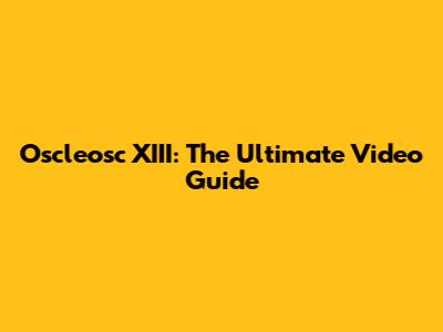 Oscleosc XIII: The Ultimate Video Guide