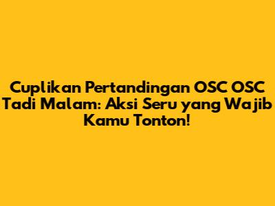 Hai, guys! Gimana kabarnya nih? Pasti lagi pada penasaran kan sama hasil pertandingan OSC OSC tadi malam? Tenang aja, kalian datang ke tempat yang tepat! Di artikel ini, kita bakal bedah tuntas semua momen seru, gol-gol indah, dan tentu saja, cuplikan pertandingan OSC OSC tadi malam yang bikin jantung berdebar kencang. Siap-siap ya, karena bakal banyak kejutan dan aksi-aksi spektakuler yang nggak boleh dilewatkan!