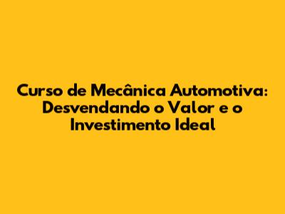 Ah, o mundo da mecânica automotiva! Para muitos, é um universo fascinante de motores, engrenagens e a arte de colocar um carro para roncar novamente. Se você está pensando em fazer um curso de mecânica automotiva, provavelmente já se perguntou: quanto custa um curso de mecânica de carros? E, mais importante, vale a pena o investimento? Neste artigo, vamos mergulhar fundo no universo dos cursos de mecânica automotiva, desvendando os preços, o que esperar e como escolher o curso perfeito para você. Então, prepare-se, porque vamos embarcar juntos nessa jornada!