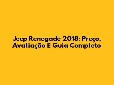 Jeep Renegade 2018: Preço, Avaliação E Guia Completo