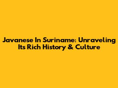 Javanese In Suriname: Unraveling Its Rich History & Culture