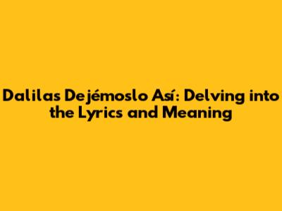 Hey guys! Let's dive into Dalila's hit song, "Dejémoslo Así." This track isn't just a catchy tune; it's packed with emotion, storytelling, and a whole lot of heart. If you've ever felt the sting of a complicated relationship or the bittersweet ache of letting go, you'll probably find a lot to relate to here. We're going to break down the lyrics, explore what makes the song so powerful, and maybe even uncover a few hidden meanings along the way. Get ready to feel all the feels as we unravel the magic behind "Dejémoslo Así"!