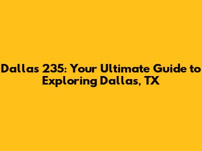 Hey guys! Ready to dive into everything Dallas has to offer? Whether you're a local or planning a visit, this guide, Dallas 235, is your ultimate resource. We're going to cover the must-see attractions, hidden gems, best eats, and insider tips to make your Dallas experience unforgettable. So, buckle up and let's explore the vibrant city of Dallas!