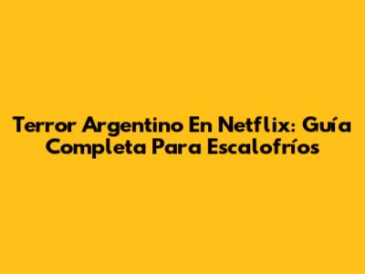 Terror Argentino En Netflix: Guía Completa Para Escalofríos