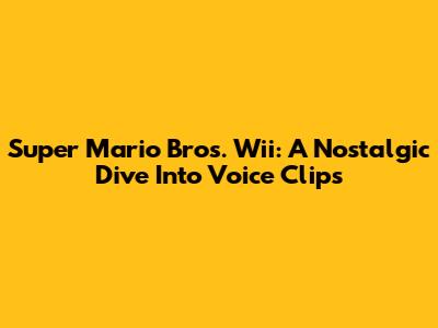 Super Mario Bros. Wii: A Nostalgic Dive Into Voice Clips