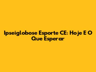 Ipseiglobose Esporte CE: Hoje E O Que Esperar