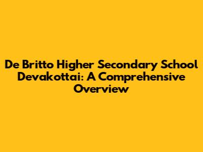 Hey guys! Ever wondered about one of the top schools in Devakottai? Let's dive into everything you need to know about De Britto Higher Secondary School! This institution is renowned for its academic excellence, holistic development, and commitment to shaping future leaders. Whether you're a parent considering enrolling your child or simply curious about the school's offerings, this comprehensive guide will provide you with all the essential details. So, buckle up and let's explore what makes De Britto a standout educational institution.