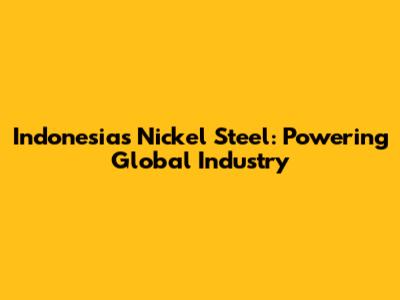 Indonesia's Nickel Steel: Powering Global Industry