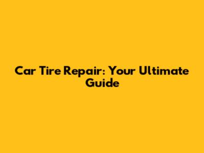 Car Tire Repair: Your Ultimate Guide