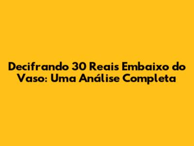 Interpretações e Significados: O Que "30 Reais Embaixo do Vaso" Realmente Significa?