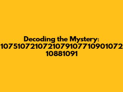 Ever stumbled upon a sequence of numbers that just leaves you scratching your head? Today, we're diving deep into the enigmatic number string: 1075107210721079107710901072 10881091. What could it possibly mean? Is it some sort of secret code, a random sequence, or perhaps a numerical representation of something entirely different? Let's put on our detective hats and unravel this mystery together, exploring various possibilities and potential meanings behind this intriguing string of digits.