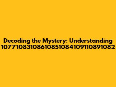 Hey guys! Ever stumbled upon a number that just makes you scratch your head and wonder, "What on earth does that mean?" Well, today we're diving deep into one such numerical enigma: 10771083108610851084109110891082. Sounds like a super-secret code, right? Let's break it down and see if we can unravel the mystery behind this string of digits. This is going to be a fun ride, so buckle up!