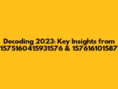 Hey everyone! Let's dive into some interesting data points – 1575160415931576 and 157616101587 – and see what they might reveal about the year 2023. This might seem a bit abstract at first, but trust me, we're going to break it down and see if we can find some cool insights. Think of it like being a detective, trying to figure out the hidden meaning behind some numbers. So, buckle up, grab your detective hats, and let’s get started. We'll explore these numerical codes and connect them to the events, trends, and shifts that defined 2023. This analysis could potentially unveil some unexpected revelations.
