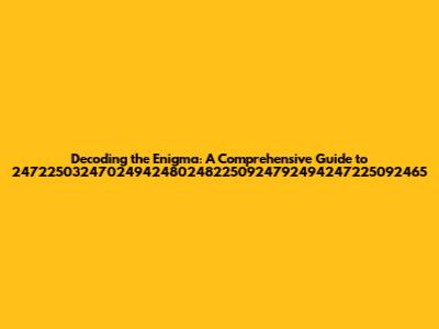 Hey guys! Ever stumbled upon a seemingly random string of numbers and wondered what secrets it holds? Well, today we're diving deep into the mysterious sequence 247225032470249424802482250924792494247225092465. This isn't just a jumble of digits; it's a code, a puzzle, a potential key to something fascinating. Whether it's a serial number, an encoded message, or a unique identifier, understanding its nature can unlock a world of information. Let's embark on this adventure together and unravel the mystery behind this numerical enigma.