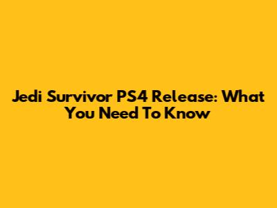 Jedi Survivor PS4 Release: What You Need To Know