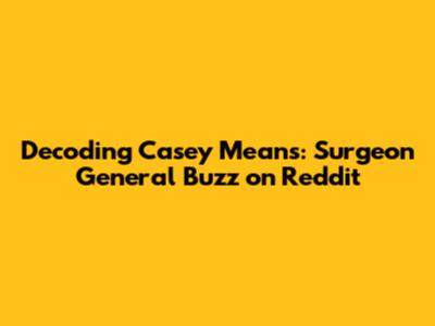 Hey everyone! Let's dive into the buzz surrounding Casey Means and the whispers of a potential Surgeon General role, especially as it's been discussed on Reddit. It's a fascinating topic, and the online community's take offers some interesting perspectives. We'll explore who Casey Means is, what makes her a notable figure, and why there's chatter about her possibly becoming the next Surgeon General. Plus, we'll navigate the Reddit threads to see what the online world is saying. Ready to jump in, guys? Let's get started!
