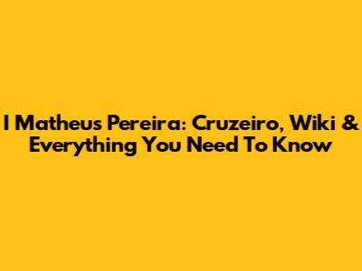 I Matheus Pereira: Cruzeiro, Wiki & Everything You Need To Know