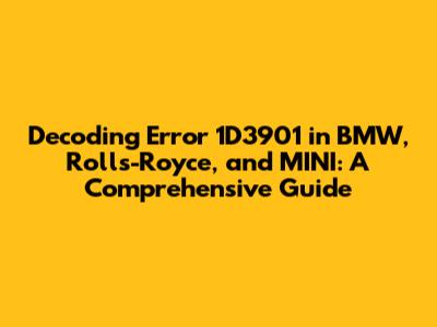Hey there, car enthusiasts! Ever seen the error code 1D3901 pop up on your BMW, Rolls-Royce, or MINI? Don't sweat it; we're here to break down what this code means, why it happens, and how to potentially fix it. Let's dive in and get those high-performance machines running smoothly again. This guide is your go-to resource for understanding and addressing the dreaded 1D3901 error. We'll explore the causes, symptoms, and potential solutions, ensuring you're well-equipped to tackle this issue head-on. Whether you're a seasoned mechanic or a DIY enthusiast, this article offers valuable insights to get you back on the road with confidence. The 1D3901 error code can be a real headache, but with the right knowledge, you can diagnose and resolve the problem efficiently. So, buckle up, and let's unravel the mystery behind this common automotive challenge.