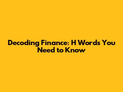 Hey finance enthusiasts, let's dive into the fascinating world of financial jargon, specifically focusing on terms that kick off with the letter "H." Knowing these words is super important for anyone looking to understand the ins and outs of the financial world, whether you're a seasoned investor, a budding entrepreneur, or just someone trying to make sense of your own finances. We're going to break down these terms in a way that's easy to understand, even if you're not a finance guru. Get ready to expand your financial vocabulary – it's time to learn about some key "H" words! This article is all about making the complex world of finance a little less intimidating, one word at a time. So, grab your coffee, sit back, and let's get started. We're going to cover everything from basic concepts to more advanced financial terminology, ensuring you have a solid understanding of these crucial terms.