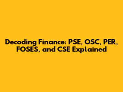Ever stumbled upon financial acronyms and felt like you're reading a foreign language? You're definitely not alone! The world of finance is filled with abbreviations that can seem confusing, but understanding them is key to navigating investments, market analysis, and economic trends. So, let's break down some common terms: PSE, OSC, PER, FOSES, and CSE. Understanding these terms can really empower you to make smarter financial decisions and participate more confidently in the market. This article will serve as your friendly guide to demystifying these acronyms and equipping you with the knowledge you need to thrive in the world of finance.
