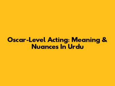 Oscar-Level Acting: Meaning & Nuances In Urdu