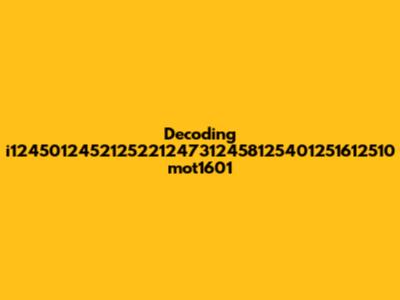 Let's dive into the cryptic world of i1245012452125221247312458125401251612510 mot1601. At first glance, it looks like a random string of numbers and letters, but trust me, there's a method to this madness – or at least, we'll try to find one! Understanding these kinds of identifiers, especially in computing, data management, or even specific industrial contexts, often requires a bit of detective work. We need to break down the components, look for patterns, and see if any known systems or standards might be using this type of notation. Whether it's a serial number, a product code, or some internal tracking ID, figuring it out can be like solving a mini-puzzle. So, let's put on our thinking caps and explore the possibilities behind this enigmatic sequence. We’ll explore potential structures, look at similar examples, and even consider the context where this string was found, all in the hopes of shedding some light on what it actually means. By the end of this exploration, even if we don't have a definitive answer, we'll at least have a better understanding of how such identifiers are used and decoded in various fields. Remember, guys, every complex code has a key, and sometimes it just takes a bit of digging to find it!