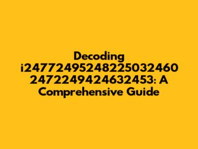 First things first, let's break down this beast. i24772495248225032460 2472249424632453 is a string of alphanumeric characters, meaning it contains both letters and numbers. The presence of the letter "i" at the beginning might suggest a specific identifier or a variable name in a programming context. The long string of numbers that follows could represent anything from a unique ID to a timestamp, a numerical code, or even a hash value. Analyzing the structure can provide clues about its origin and purpose. Is there a pattern? Are certain numbers repeated? Does the length suggest a specific type of encryption or encoding? These are all questions we can ask to start piecing together the puzzle. For example, if we see repeating sequences, it could indicate a specific algorithm or encoding method. If the numbers are all unique and seemingly random, it might be a hash or a randomly generated identifier. The key is to look for any hints within the string itself that can point us in the right direction. We will start doing a deep dive into potential meanings, contexts and possible origins of it.