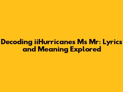 Hey guys! Ever found yourself humming along to a song, totally vibing with the beat, but scratching your head trying to figure out what it's actually about? Yeah, we've all been there. Today, we're diving deep into iiHurricane's track "Ms Mr" to unpack its lyrics and explore the possible meanings behind this captivating song. Buckle up, because we're about to embark on a musical journey!