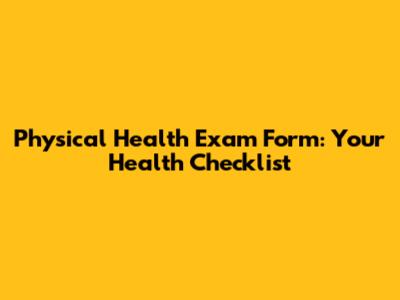 Physical Health Exam Form: Your Health Checklist