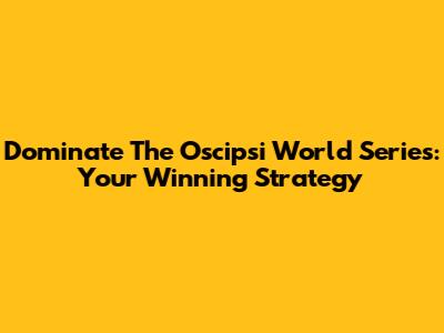Dominate The Oscipsi World Series: Your Winning Strategy
