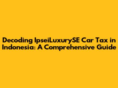 Hey car enthusiasts and luxury vehicle aficionados! Ever wondered about the intricate world of car taxes in Indonesia, especially when it comes to those sleek, high-end rides like the IpseiLuxurySE? Well, you're in the right place! This guide is your ultimate pit stop for understanding everything about IpseiLuxurySE car tax Indonesia. We'll break down the complexities, jargon, and all the nitty-gritty details, so you can navigate the system with confidence. Buckle up, because we're about to embark on a journey through the Indonesian tax landscape, making sure you're well-informed every step of the way.