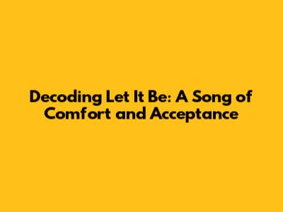 Hey everyone! Ever wondered about the profound message woven into the lyrics of "Let It Be" by The Beatles? This iconic song, released in 1970, isn't just a catchy tune; it's a deep dive into themes of comfort, acceptance, and the power of letting go. So, buckle up, because we're about to explore the meaning behind "Let It Be," uncovering its layers of inspiration and impact. The song's simple yet powerful message has resonated with generations, offering solace during tough times and encouraging a spirit of resilience. We'll delve into the context of its creation, analyze the lyrics, and explore the song's lasting influence on music and culture. Get ready to understand why "Let It Be" is more than just a song; it's a timeless anthem for navigating life's challenges.