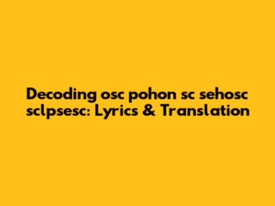 Hey guys! Ever stumbled upon a song with lyrics that sound like a secret code? Today, we're diving deep into deciphering the enigmatic phrase "osc pohon sc sehosc sclpsesc." It sounds like something straight out of a dream, doesn't it? Well, let's roll up our sleeves and get to the bottom of what this could mean, exploring potential interpretations, translations, and the overall context it might appear in. Whether it's a catchy tune or a puzzling poem, understanding the heart of these words can unlock a whole new level of appreciation. So, grab your detective hats, and let's embark on this lyrical adventure together! Understanding the meaning behind these unique phrases can not only deepen your appreciation for the art but also offer insights into the artist's vision and creative process. Sometimes, the beauty of a song lies not just in its melody, but also in the story it tells, hidden within layers of poetic language and cultural references. Let's explore this mystery together!