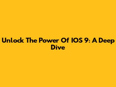 Unlock The Power Of IOS 9: A Deep Dive