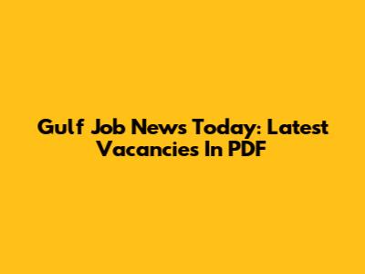 Gulf Job News Today: Latest Vacancies In PDF