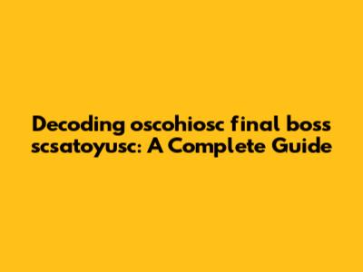 The term "final boss" is a common trope in video games, representing the ultimate challenge that players must overcome to complete the game. In this context, it likely refers to the last and most difficult enemy encountered in a game. However, the term "final boss" can also be used metaphorically to describe any significant obstacle or challenge in real life. For example, someone might say that dealing with a difficult client at work is their "final boss" for the day. Understanding this dual meaning is crucial for interpreting the phrase "oscohiosc final boss scsatoyusc." If the phrase is used in a gaming context, then "final boss" likely refers to an actual in-game character. However, if the phrase is used in a more general context, then "final boss" could represent a metaphorical challenge or obstacle. To determine the correct interpretation, it's important to consider the surrounding context and the intended audience. For example, if the phrase is used in a gaming forum, then it's more likely to refer to an in-game character. On the other hand, if the phrase is used in a business meeting, then it's more likely to represent a metaphorical challenge. In addition to its literal and metaphorical meanings, the term "final boss" can also carry certain connotations. It often implies a sense of difficulty, challenge, and even frustration. Overcoming a final boss requires skill, strategy, and perseverance. It can also be a source of great satisfaction and accomplishment. These connotations can add another layer of meaning to the phrase "oscohiosc final boss scsatoyusc." By understanding the various meanings and connotations of the term "final boss," we can gain a deeper appreciation for the phrase as a whole. This will help us to interpret its meaning more accurately and to understand its intended message. So, let's keep these considerations in mind as we continue to dissect the remaining components of the phrase.