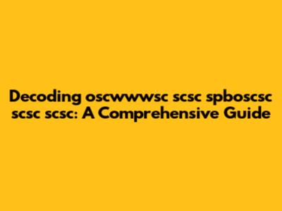 Alright, let's dissect this beast. "oscwwwsc scsc spboscsc scsc scsc" isn't your everyday phrase; it looks like a jumble of abbreviations and possibly some repetitive elements. To get a grip on it, we need to look at each component individually and see if any of them ring a bell.
