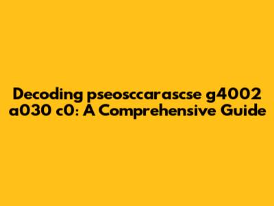 Hey guys! Ever stumbled upon a mysterious string of characters and wondered what it all means? Today, we're diving deep into the enigmatic world of "pseosccarascse g4002 a030 c0." Buckle up, because we're about to unravel this code and shed some light on its potential significance. Whether you're a tech enthusiast, a curious learner, or someone just trying to make sense of random data, this guide is tailored just for you. We'll break down each component, explore possible interpretations, and give you a comprehensive understanding of what this alphanumeric string might represent. Let's get started and transform this mystery into clarity!