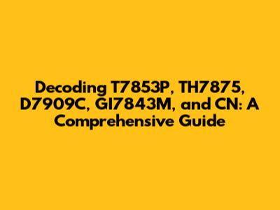 \Alright, guys, let's dive into the fascinating world of alphanumeric codes! Today, we're cracking the code on T7853P, TH7875, D7909C, GI7843M, and CN. These seemingly random strings of letters and numbers often hold significant meaning, whether they're part numbers, serial numbers, or some other identifier. Understanding them can unlock a wealth of information, from product specifications to manufacturing dates. So, buckle up and get ready to decode!