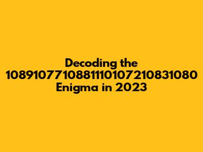 Hey guys, let's dive into something a little different today! We're gonna crack the code behind the seemingly random sequence: 1089107710881110107210831080. And the kicker? We're doing it with a 2023 lens. What does this string of numbers even mean? That's what we're here to find out! This could be a reference, a specific code, or just some digital gibberish. Ready to unravel this digital mystery together?
