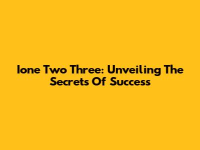 Ione Two Three: Unveiling The Secrets Of Success
