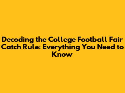 Hey guys, let's dive into something that's super important in college football: the fair catch rule. This rule, often subtle but always impactful, dictates how a team can secure possession after a punt or kickoff. Understanding it isn't just for the coaches or players; it's crucial for any fan who wants to truly appreciate the game's strategy and the split-second decisions that can change the entire flow of a match. So, grab your snacks, get comfortable, and let's break down everything you need to know about the fair catch in college football. We'll go over what it is, when it applies, what happens after the signal, and why it matters so much.